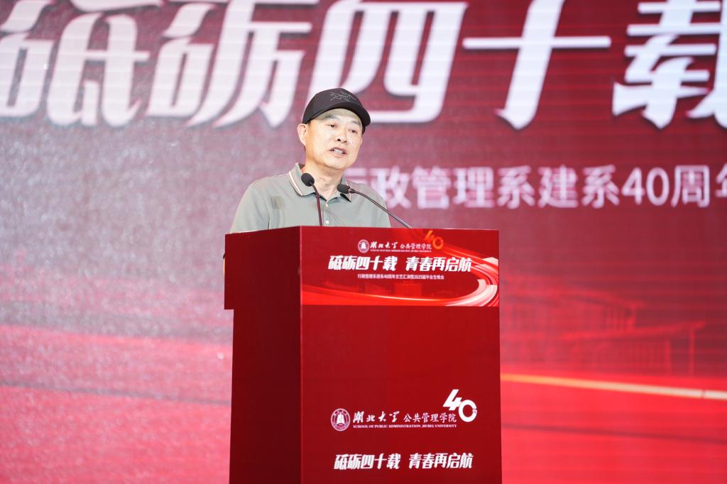 公司教师代表孙友祥教授讲述了行政管理系从单一的“系”成长为新文科公司的发展历程。作为与行政管理系同成长、共发展40年的参与者、见证者和受益者,他特别感谢公司领导和专家学者对公司发展的大力支持,对公司一代代师生接续奋斗的担当精神和广大院友取得的杰出成就深感自豪。他深情期望广大毕业生将个人发展融入国家发展大局,在地方治理、乡村振兴等广阔舞台上贡献公管人的智慧和力量。