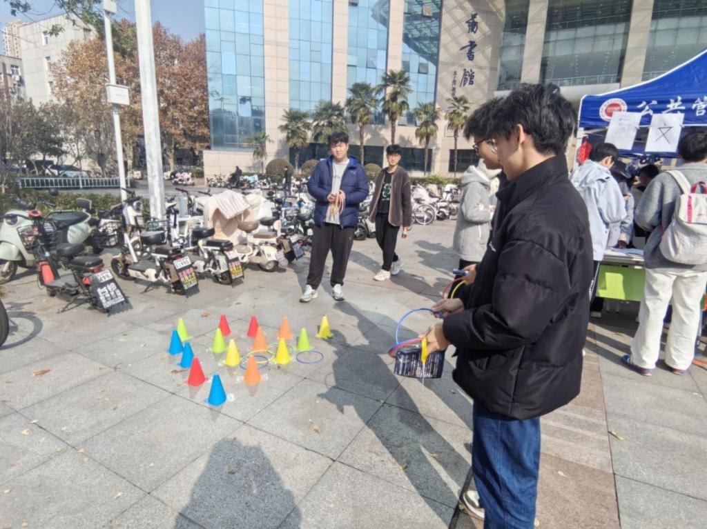 在“考公模拟大挑战”环节,工作人员化身“场景出题官”,围绕政策解读、应急处置、沟通协调等场景设计考题,参与者以“准职场人”身份现场破题,沉浸式投入其中,现场思路清晰、表达流畅。“你画我猜大比拼”则融入公共管理常识、校园文化等内容,参与者用画笔传递题目信息,其他成员限时竞猜,画笔传递间创意频出,猜题环节紧张又欢乐。“目光锁定大作战”规则简约易懂,无需复杂道具,通过快速反应游戏让大家在互动中放松身心;“套圈嘉年华”作为人气环节,充分调动了大家的参与热情,每当有奖品被套中,现场就响起阵阵欢呼,将氛围推向高潮。