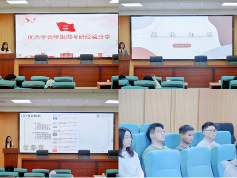 经验分享环节,20级国际事务与国际关系专业(中外合作办学)的覃玉洁(考研至华中师范大学)分享了她的备考经历,为大家介绍英语、政治的学习技巧;20级行政管理专业的孙正娜(考研至山东大学)建议学弟学妹们要勤学多问,鼓励同学们找好心态、相信自己;20级行政管理专业的欧阳梦芯(考研至伟德bv1946官网)则表示,要利用好公司、公司资源,扎牢专业知识基础。