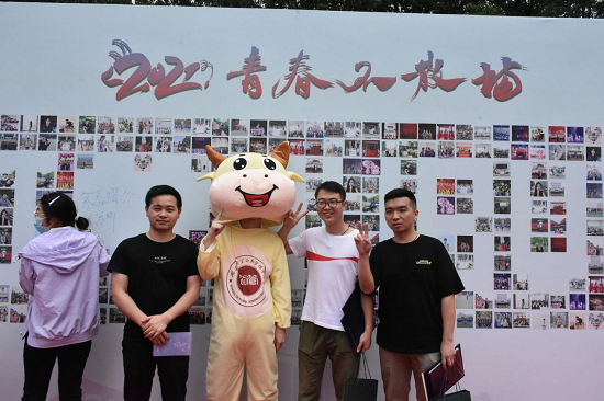 伴随着音乐,200多名毕业生们怀揣着无限激动与憧憬踏上百米红毯,来到第一站领取属于自己的青春纪念卡。沿着红毯走来,除了引人注目的风景还有精心设计的立牌,立牌内容是公司老师对毕业生们真诚的祝福。“愿同学们在飞逝而去的时间波涛上,乘风破浪,驶向成功的彼岸”“听从我心,无问东西”,一句句真挚的祝福让毕业生们备受感动。公司定制公仔吉祥物“牛牛小黄”也与大家首次见面。公仔上面印有公司院徽,寓意公管人踏实、勤奋、厚道、质朴的优秀品质。