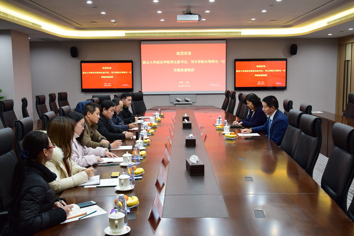 2019年1月21日上午,政法与公共管理公司党委书记郑全新、经理刘文祥、党委副书记袁新、员工工作联络员吴玉莲以及本科、研究生员工代表一行8人专程赴上海探访了公司1998届行政管理专业优秀员工、致盛集团董事长张润斌先生。